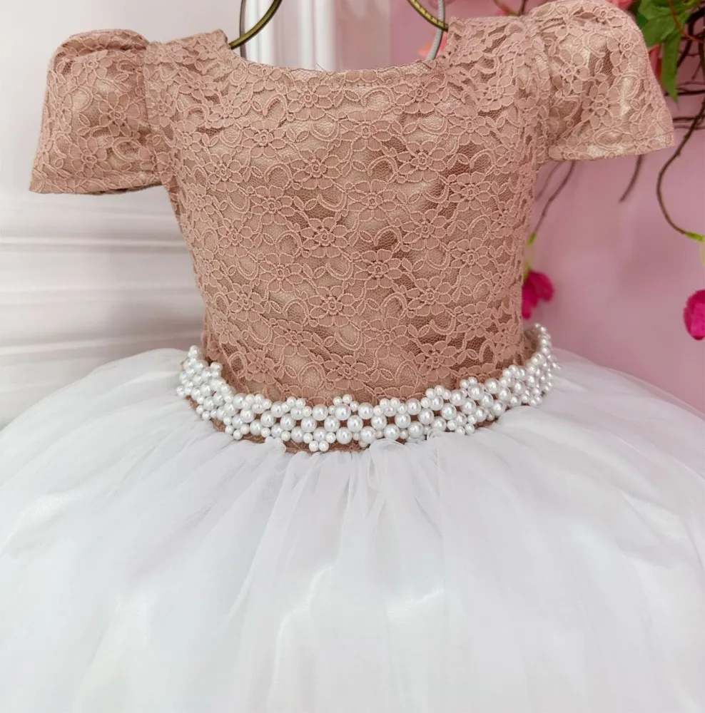 Vestido Festa Rose Renda Saia Branca Enjoy Kids