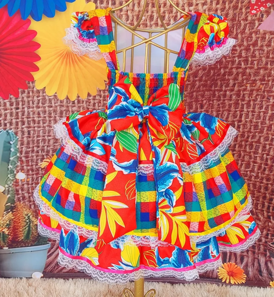 Lindo vestido junino... Look ideal para ser usado na Quadrilha da escola, aniversários no tema e ensaios fotográficos. Perfeito também para os passeios em família durante o tempo das festas típicas!