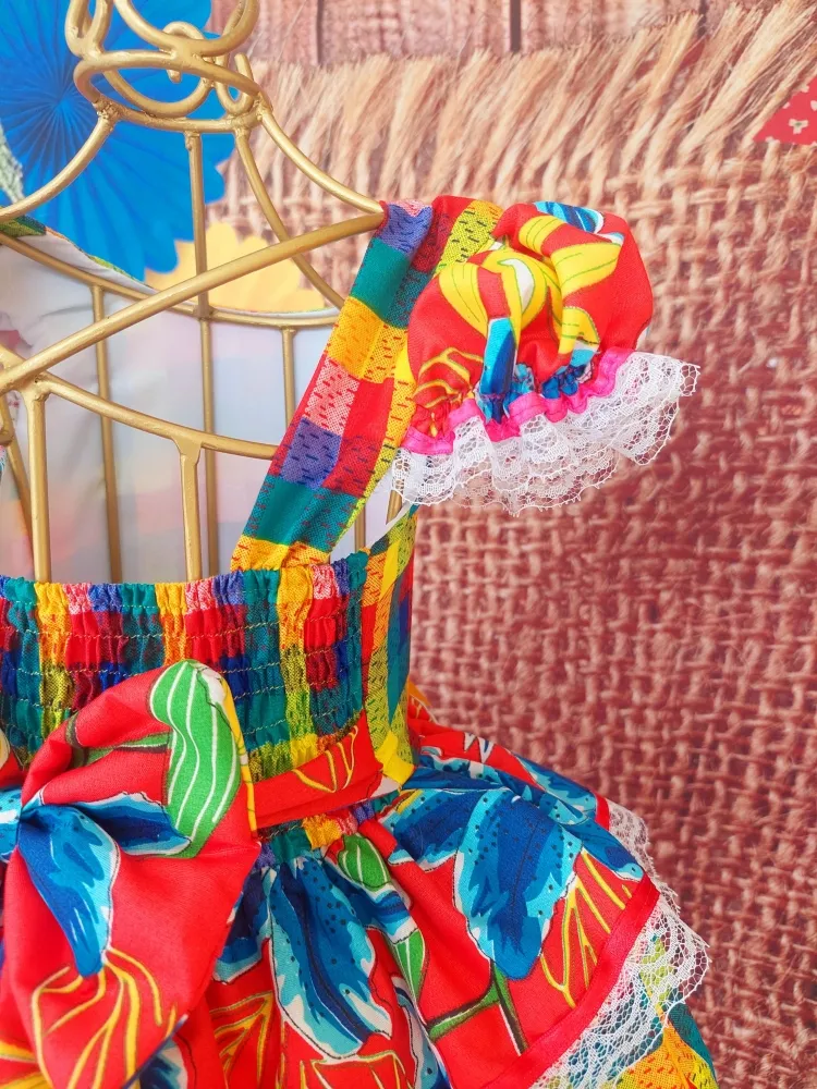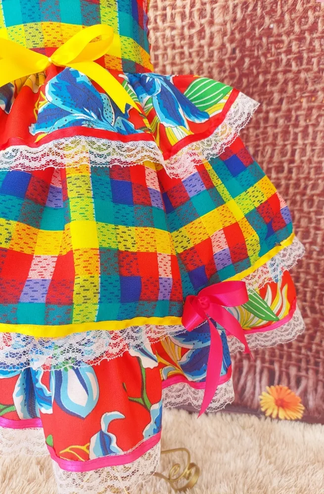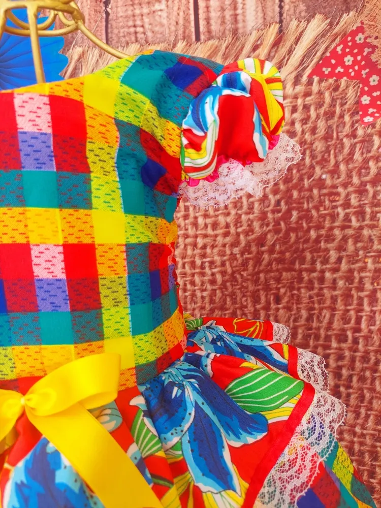 Vestido Junino Arraia Xadrez/Floral