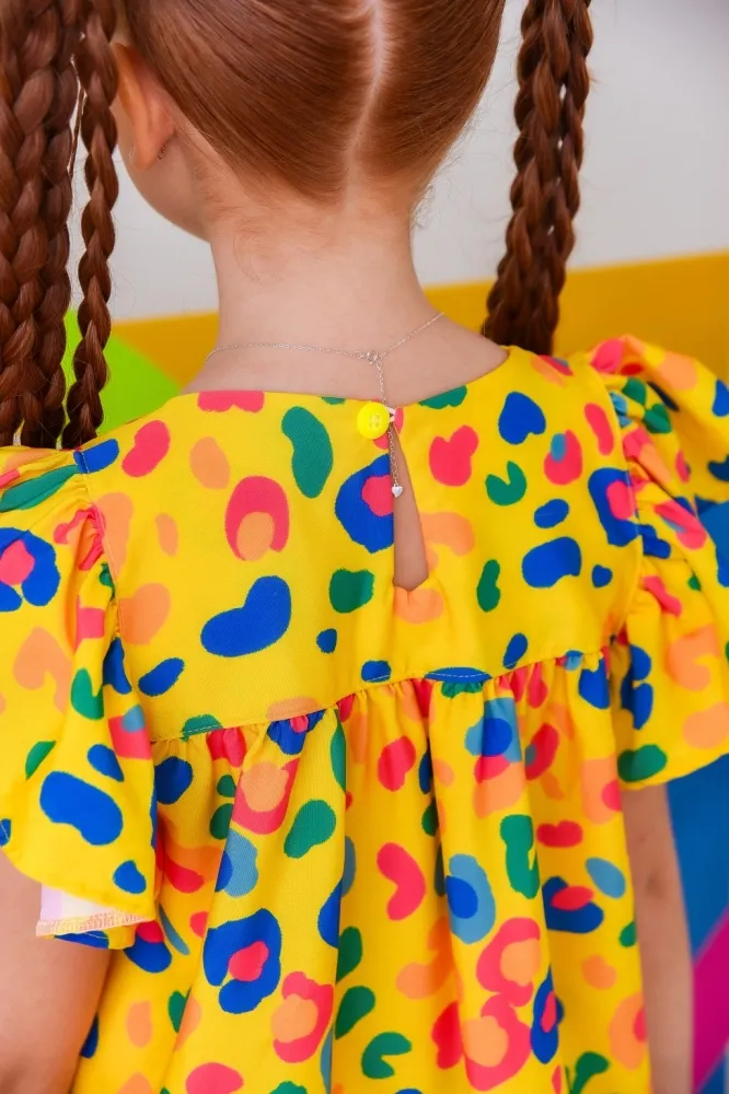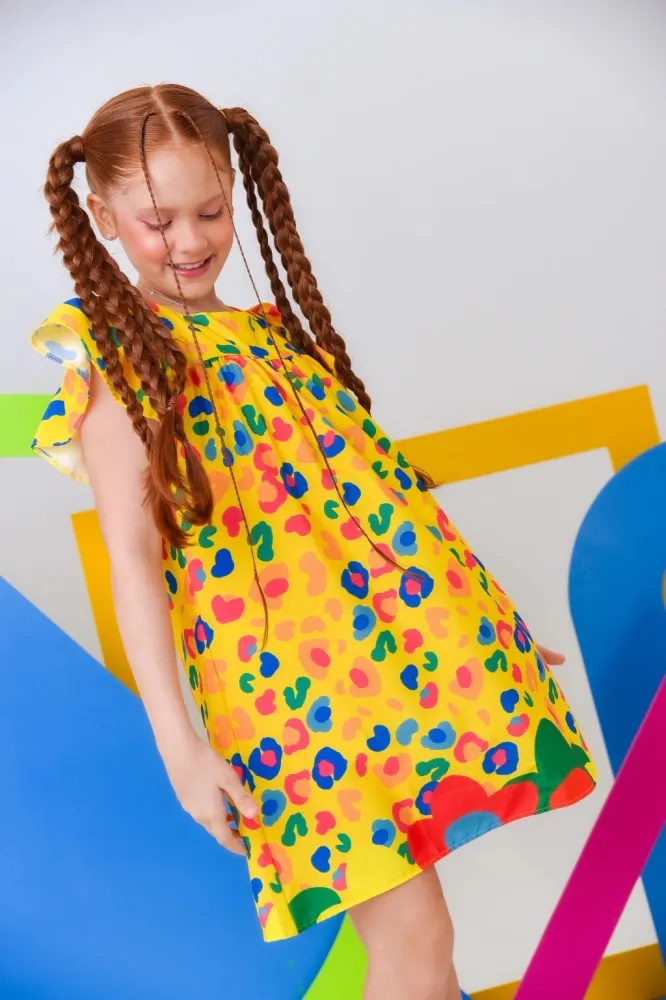 Explosão de cores e fofura no ar! Esse vestidinho de oncinha colorida é a cara da diversão. Pronta pra arrasar com muito estilo!